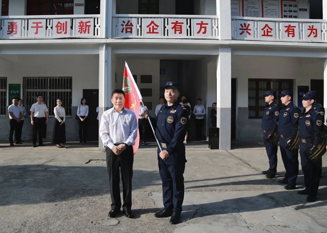 董长清为保利物业西塘服务中心获得“一星级全国青年文明号”称号的青年集体授旗