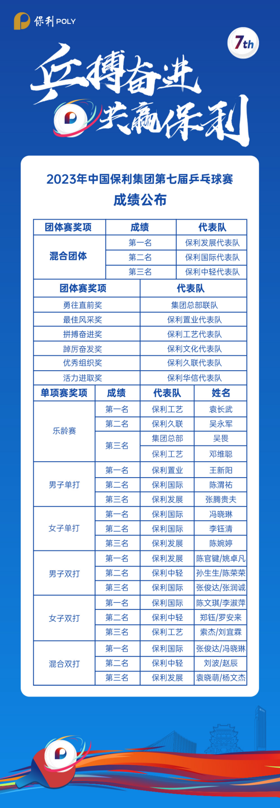 经过一场场紧张对决,本届乒乓球赛获奖情况新鲜出炉,一起为保利选手打call!