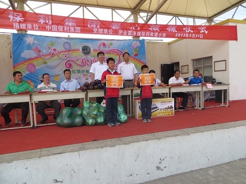5月31日,保利集团员工爱心捐赠仪式在内蒙古伊金霍洛旗保利希望小学举行,受集团公司党委委托,保利(包头)房地产开发有限公司总经理胡嘉全代表广大员工出席捐赠仪式。本次捐赠的物品包括篮球、摄像机、电子琴等教学设备,价值五万元人民币,给孩子们献上了一份厚礼,为儿童节增添了喜气。