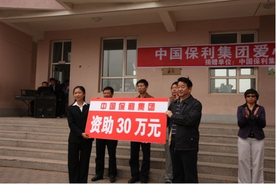 集团公司全体员工已连续十多年开展“捐资助学、奉献爱心”的活动,充分体现了保利员工关爱社会,回馈社会,无私奉献的精神,弘扬了中华民族扶贫济困、助人为乐的传统美德,激发了广大员工艰苦奋斗,爱岗敬业的拼搏精神,履行了央企社会责任。集团公司坚持数年捐助保利希望小学受到了伊金霍洛旗党委、政府和希望小学全体师生的高度赞扬。