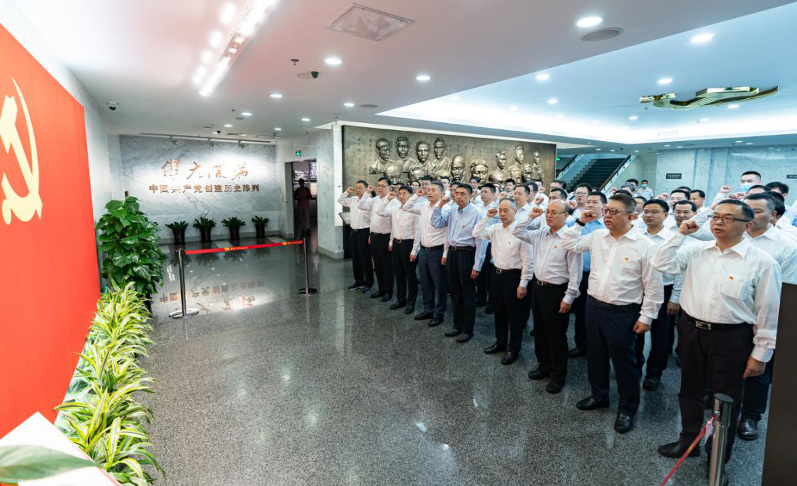 9月15日,保利集团驻沪企业就“发扬抗疫精神,努力完成任务,奋进‘十四五’”主题,在保利置业总部召开座谈会。会后,保利集团党委书记、董事长徐念沙,党委副书记、总经理张振高,集团领导及各职能部门负责人等五十余人赴上海中共一大会址。在徐念沙书记的带领下,保利人举手宣誓,重温入党誓词。