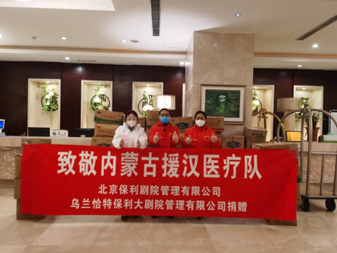 处于歇业状态保利大酒店火速恢复正常,立即成立线上管家服务团队,24小时悉心照顾医护人员的日常生活,并升级防护措施,准备各种爱心礼包。考虑到医护人员工作量大、体能消耗多,在提供一日三餐和宵夜外,还特意在大堂增设“能量加油站”,内蒙古保利剧院送来内蒙物资……