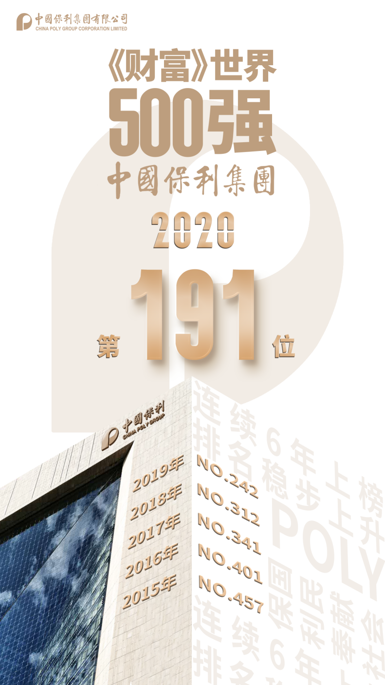 北京时间2020年8月10日,《财富》世界500强2020年榜单发布,保利集团连续6年入围该榜,今年跃升至第191位,较去年上升51位,排名再创新高。
