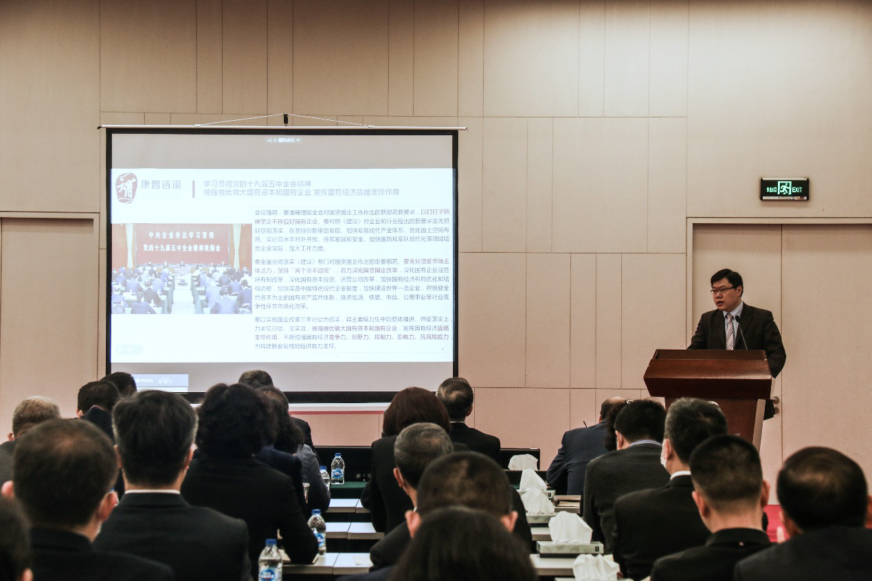 佟虎重点围绕深化三项制度改革、推行经理层任期制和契约化管理、职业经理人管理的政策导向、工作要求、操作要点以及契约、考核、薪酬、退出等做深入讲解。