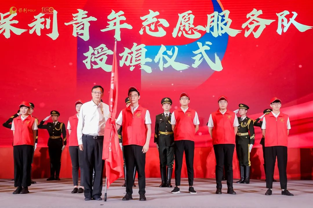 保利集团党委常委、副总经理刘军才向保利青年志愿服务队授旗