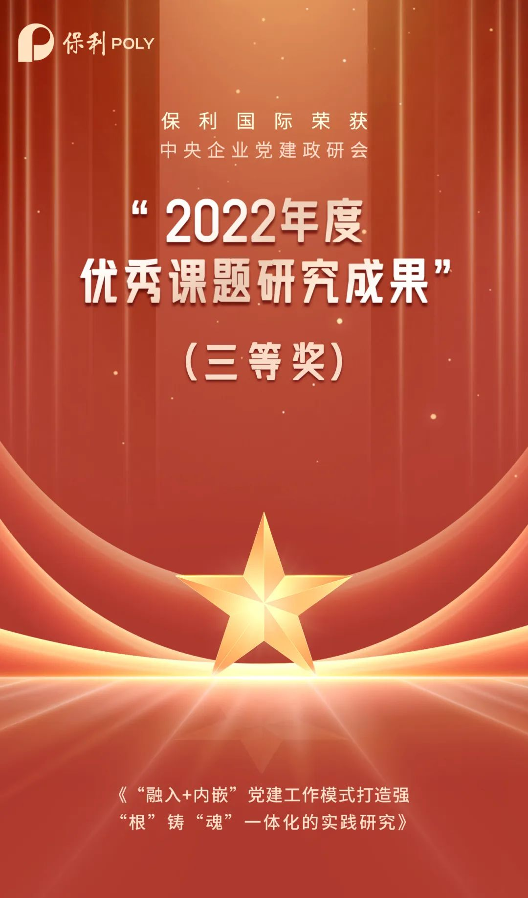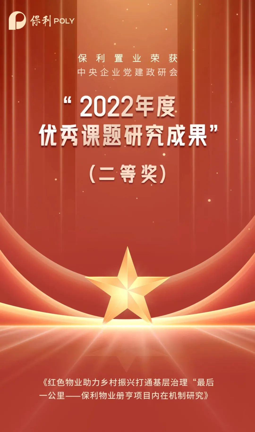 保利集团获优秀课题研究组织单位,保利集团下属保利发展、保利置业、保利国际所申报的课题分别荣获2022年度优秀课题研究成果一二三等奖。