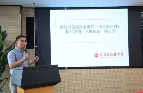 中国人民大学国有经济研究院副院长、经济学院教授杨继东发布题为《以管理创新推动世界一流企业建设:保利集团——“八维精益”的启示》的案例报告。作为大型综合类国有企业,保利集团积极创新企业管理模式,围绕“八维精益”深化改革,通过管理创新推动世界一流企业建设,取得显著的阶段性成果。在管理的横向维度上,从八个方面强化企业管理能力;在管理的纵向维度上,“时时处处事事人人”纵向到底推进企业一体化管理;在管理的立体化思维上,建立系统的学习和评估制度,持续跟踪管理和评估企业管理,推进企业实现“理念优化、机制完善、效益提升”的显著成效,为大型央企建设世界一流企业提供启示。