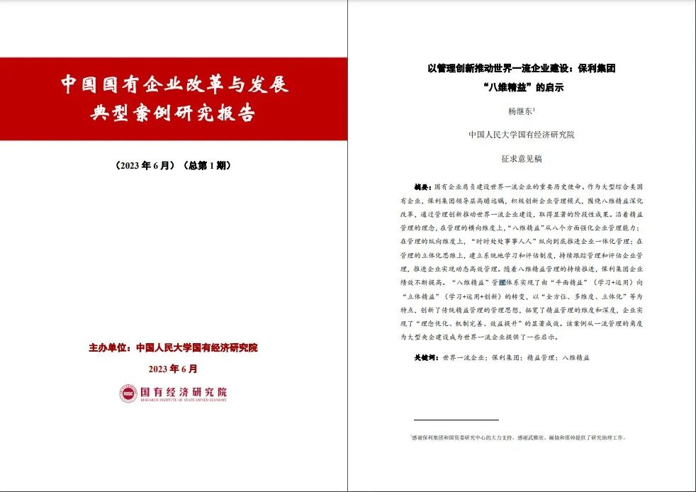 案例涵盖了系统性、时效性和合意性三大特点,体现出世界一流企业所承载的一般性管理规律既,书写了保利集团管理高质量发展的篇章,又书写了中国式企业管理探索的篇章。