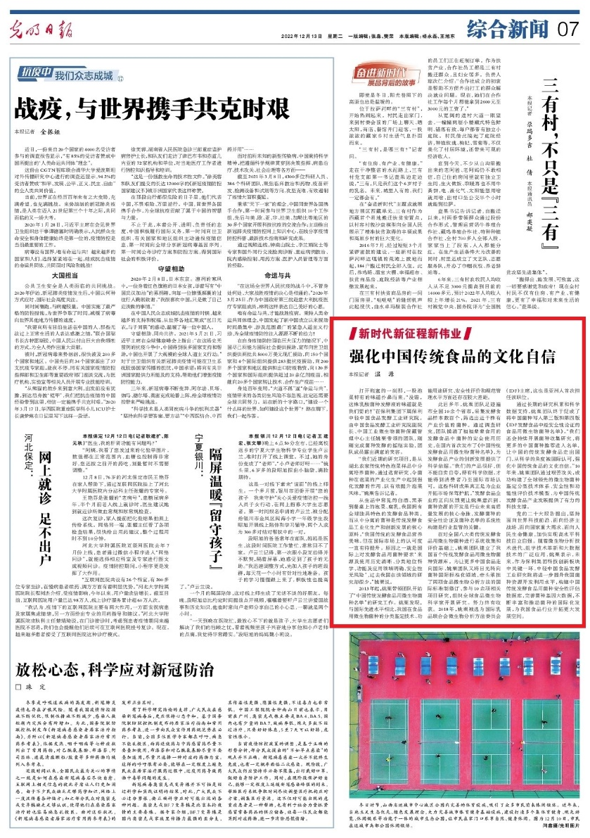 12月13日,《光明日报》“新时代新征程新伟业”专栏以《强化中国传统食品的文化自信》为题,聚焦保利中轻下属中国食品发酵工业研究院多年来攻坚中国传统发酵食品研究项目,不断引领中国风味走向世界舞台的文化自信与科技自强。