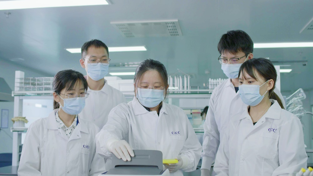 姚粟带领团队进行微生物菌种分类鉴定实验
