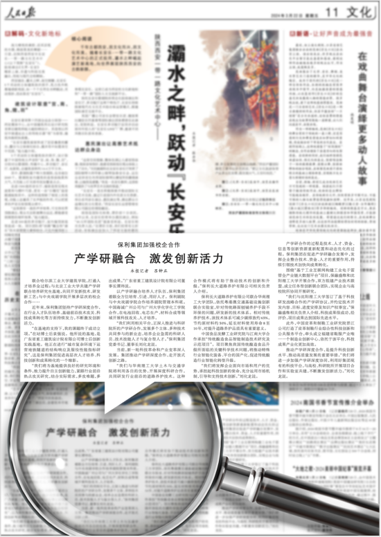 3月22日,《人民日报》刊发《保利集团加强校企合作 产学研融合激发创新活力》一文,报道保利集团坚持产学研深度合作,在行业人才队伍培养、基础前沿技术攻关、科技成果转化等方面持续发力,不断激发创新活力的系列举措成效。与大家共享——