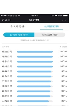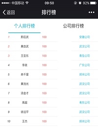 公司参与率排行榜(手机截图) 个人答题成绩排行榜(手机截图)