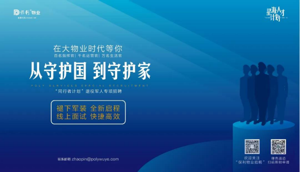 近日,保利物业全国百余城市联动开展“同行者计划”退伍军人招募工作,提供上千个综合管理类及项目管理类岗位。此前,保利物业已启动“星海人才计划”,聚焦三类关键人才,开展“百名指挥官、千名运营官、万名生活官”人才招募行动,“同行者计划”是其中的重要一环。