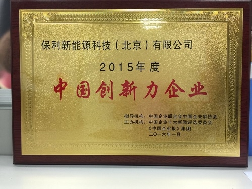 保利新能源公司荣获“2015年度中国创新力企业百强”