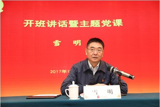 集团公司党委常委、副总经理、保利置业党委书记、董事局主席雪明出席开班仪式,并为大家讲授题为《不忘初心,牢记使命,以党的十九大精神为指引,开创保利置业转型发展新局面》的专题党课。雪明同志在党课中,对党的十九大的重要成果和主要精神进行了宣讲,结合保利置业实际从企业党建、经营管理、转型发展等各方面提出了具体要求,并对进一步学习宣传贯彻落实十九大精神进行了安排部署。