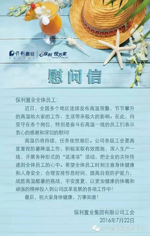 保利置业系统内开展“情系员工送清凉”慰问活动