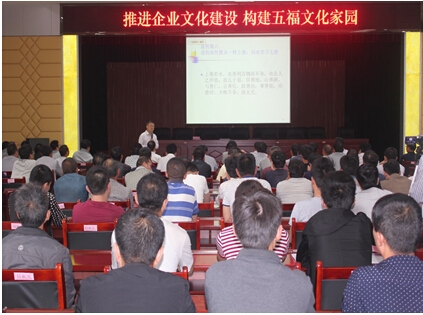 2016年6月4日上午9时,平山公司组织领导班子成员、中层干部、各部门负责人及部分职工200多人,开展题为“加强企业文化建设,构建五福文化家园”的企业文化宣传活动。