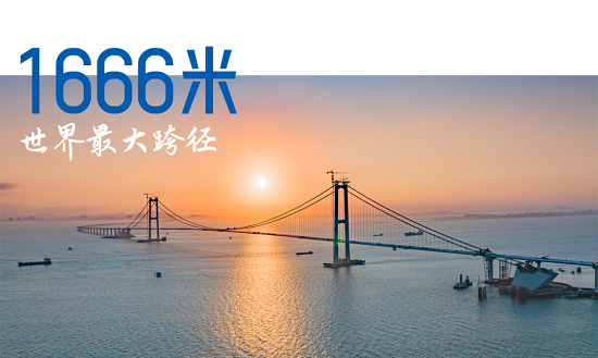 深中大桥采取三跨全漂浮体系悬索桥的建设方案,主跨达1666米。保利长大创新采用吊焊结合等多种创新施工工艺,创下世界最大跨径海中钢箱梁悬索桥纪录。