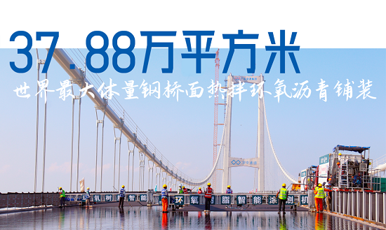 面对建筑史上规模最大的钢桥面环氧铺装工程,保利长大自主研发智能建造系统,开创业内环氧沥青铺装全环节自动化施工的先河,三次刷新单日热拌环氧沥青钢桥面铺装施工面积的世界纪录。